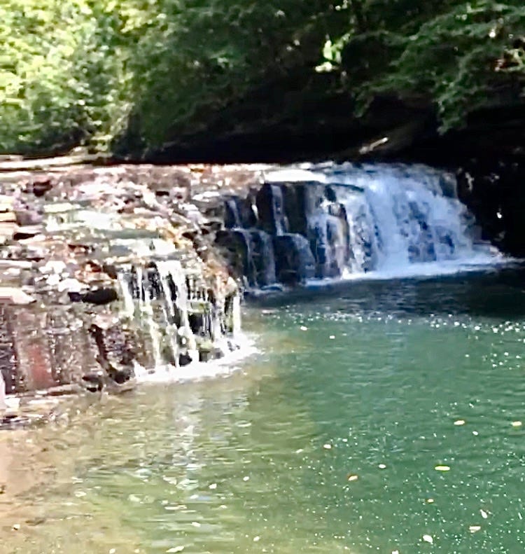 We enjoyed a lovely afternoon hiking along the river, walking around the meadow, and going swimming in a gorgeous deep swimming hole Tatiana and I have visited a couple times before. The swimming hole starts beneath Little Falls on the Little Duck River. It’s not far from the visitor center and trailhead but never seems to be overrun with people.